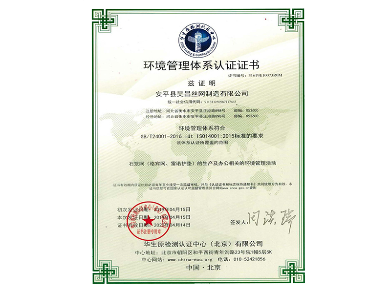 安平縣昊昌絲網制造有限公司成立于2006年,占地40000平方米,擁有生產設備二十余臺,率先引進流水線作業,是一家專業從事石籠網、格賓網、雷諾護墊生產的企業。經過不懈的努力,公司榮獲了省優產品、政府質量獎等眾多殊榮并擁有多項專利,積累了非常豐富的經驗和大量的專業化技術人才。我們已率先通過了ISO9001質量管理體系認證,并參與了三峽,南水北調,三江治理等大型堤坡防護及水利工程,歡迎來電來公司洽談。